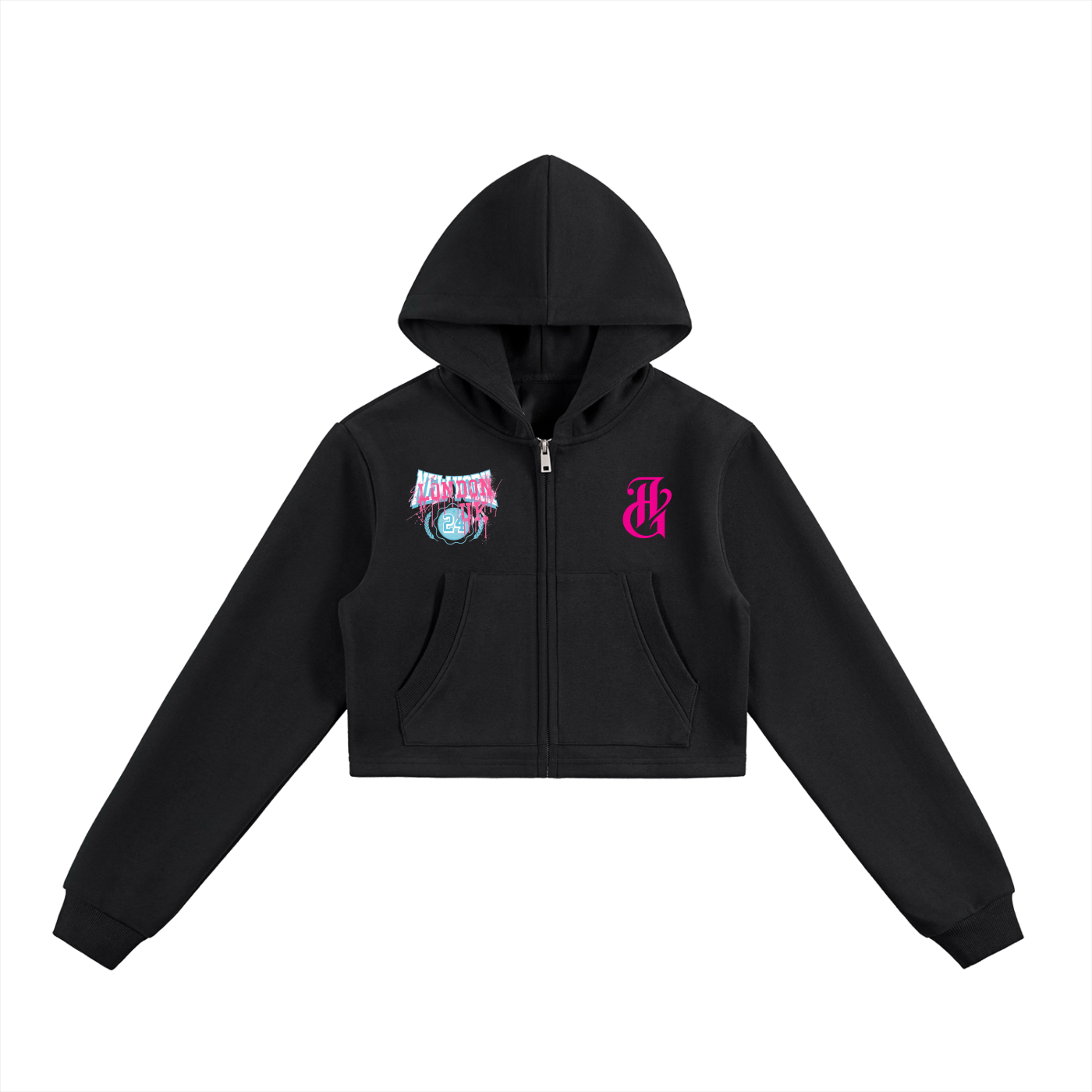 LONDON ESSENTIAL CROPPED ZIP-UP HOODIE